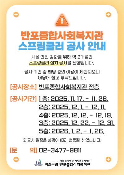 [완료] 2025년 서초구립 반포종합사회복지관 계약직 토요공간개방사업담당 1차 서류 전형 합격자 공고