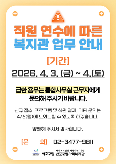 [완료]서초구립 반포종합사회복지관 계약직 사회복지사 공개채용 최종 합격자 안내