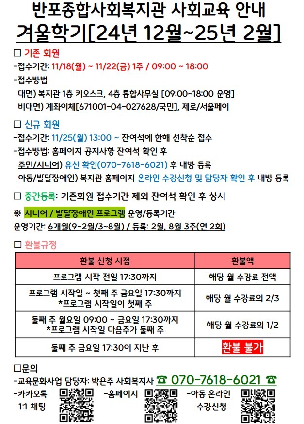 2024년 사회교육 겨울학기(12~2월) 기존회원 접수 안내